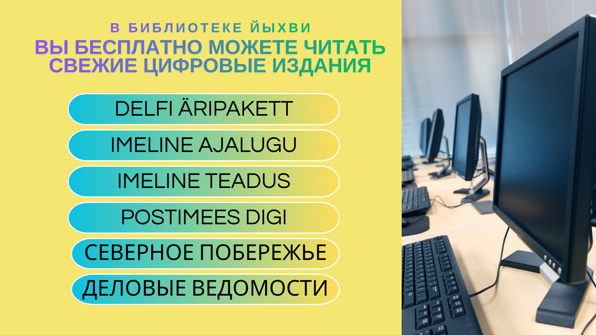 Дорогие читатели! Йыхвиская центральная библиотека присоединилась ко все-эстонской платформе книговыдачи Minu raamatukogu (MIRKO), в фонде которой более чем миллион книг. Желаемые книги или ноты можно получить в посылочном авПодробнее …